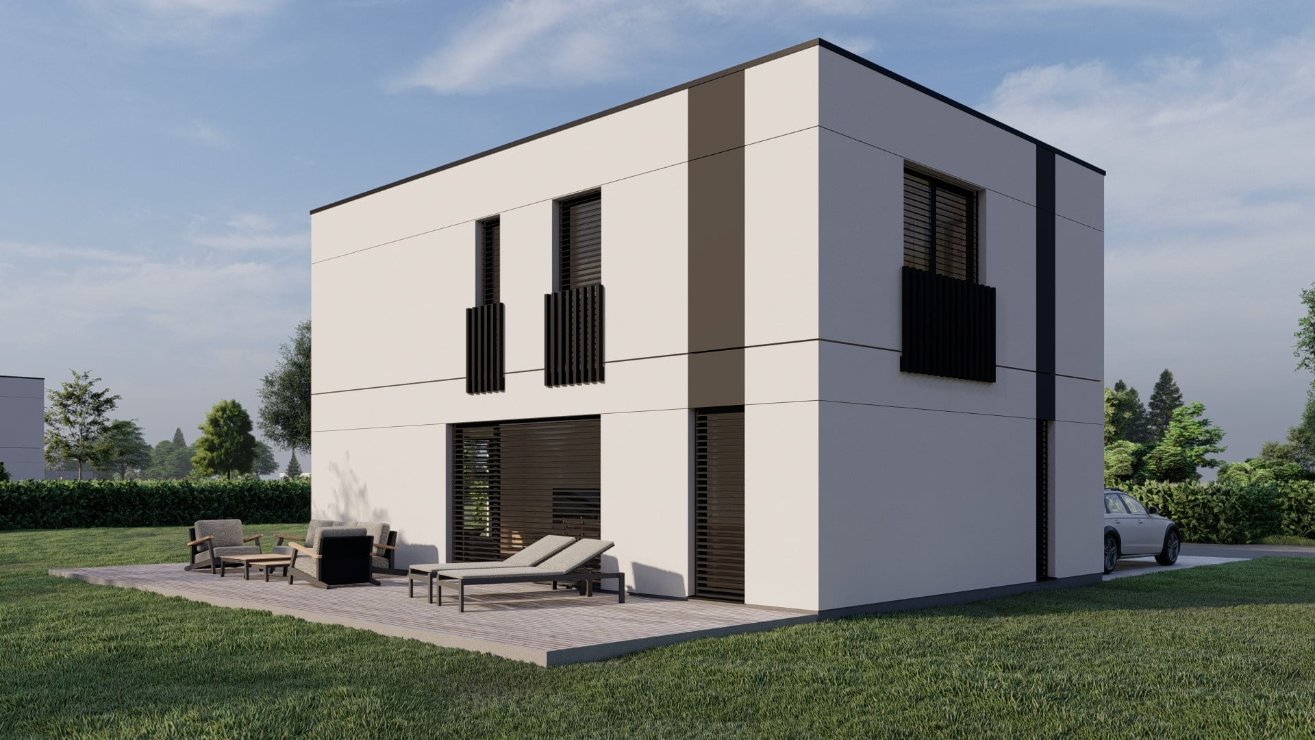 Tipka 120 je dvoetažna enodružinska hiša. Ponuja lepo bivanjsko okolje za družino na površini 120 m2. Na svoji relativno majhni kvadraturi nudi velik dnevnobivalni prostor z dvema otroškima sobama in spalnico.